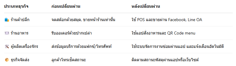 • ควรเลือกใช้เครื่องมือที่ตอบโจทย์เฉพาะ เช่น ระบบบัญชีออนไลน์ โปรแกรมจัดการสต๊อก หรือระบบ CRM ขนาดเล็ก